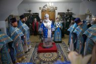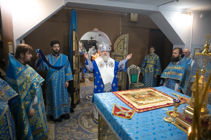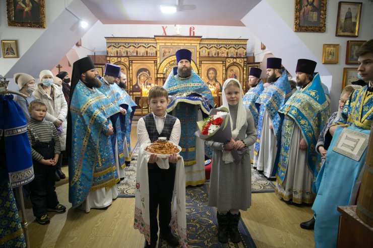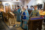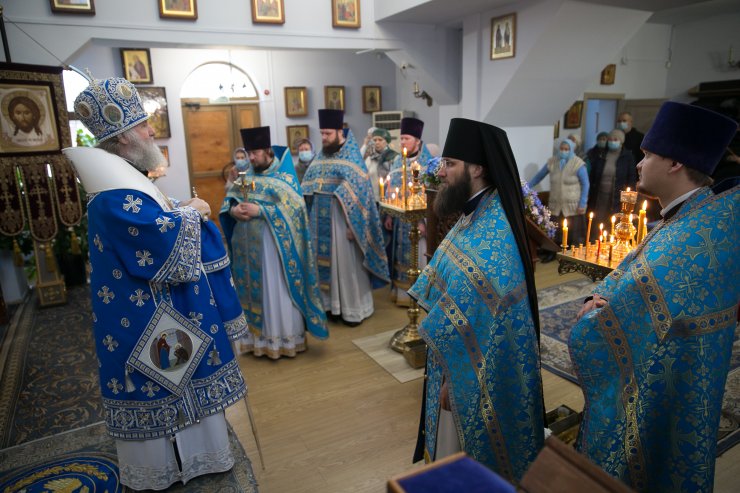 Его Высокопреосвященству сослужили: настоятель храма иерей Леонид Бартков, секретарь управляющего епархией игумен Антоний (Кирпичев), иерей Евгений Кизин, иерей Евгений Набоков, иерей Александр Фокин, духовенство храма, диакон Даниил Матвеев.