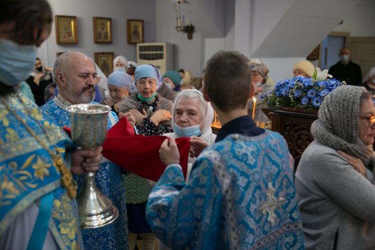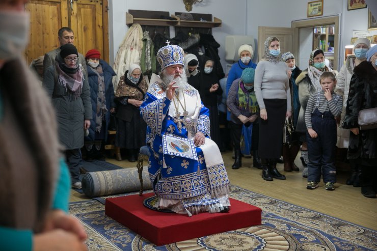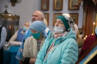 На сугубой ектении были вознесены молитвенные прошения об избавлении от коронавирусной инфекции, а также об укреплении врачей: «Призри, Владыко Человеколюбче, на жертвенный подвиг врачей наших, посли им здравие непоколебимое, силу и крепость духа, мудрость к совершению трудов во благо народа нашего и сотвори чрез них исцеление страждущим рабом Твоим, прилежно молим Ти ся, скоро услыши и помилуй».