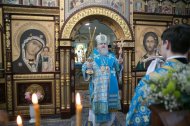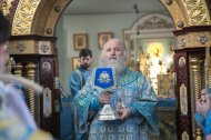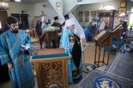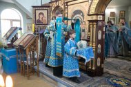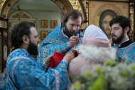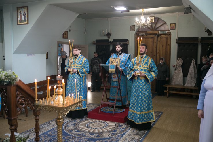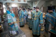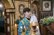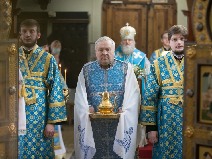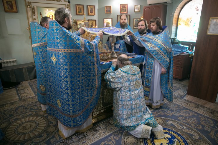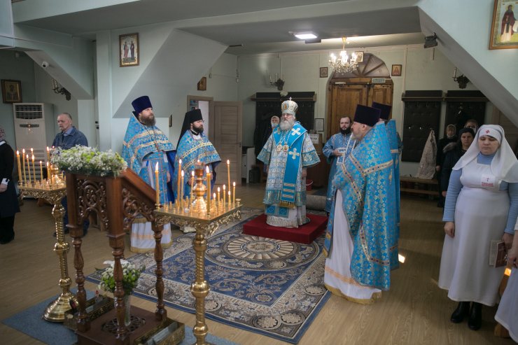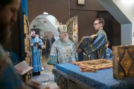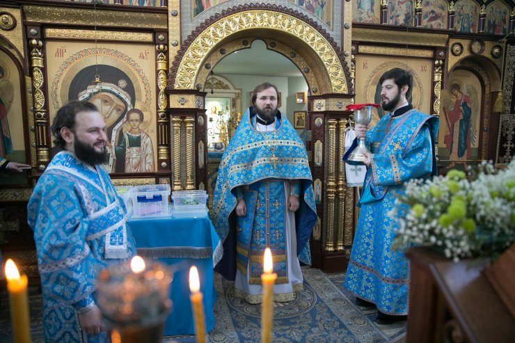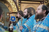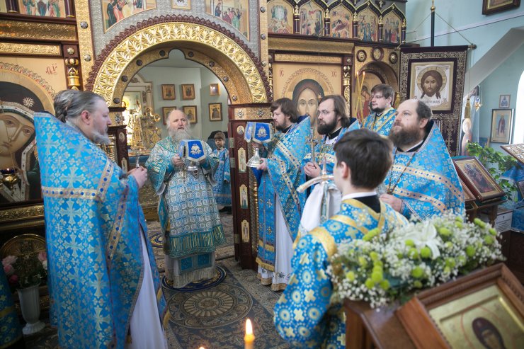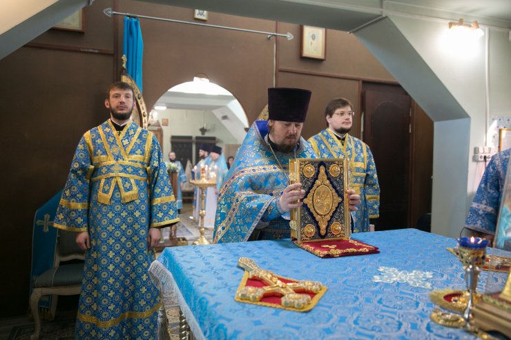 Его Высокопреосвященству сослужили: настоятель храма, иерей Леонид Бартков; секретарь управляющего епархией, иеромонах Антоний (Кирпичев); духовенство храма. Диаконский чин возглавил диакон Даниил Матвеев.