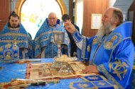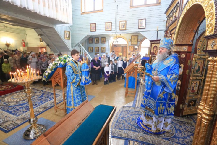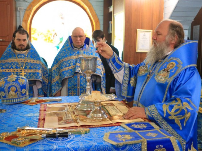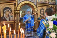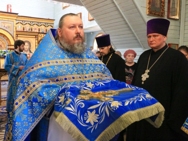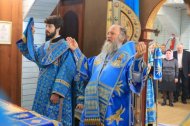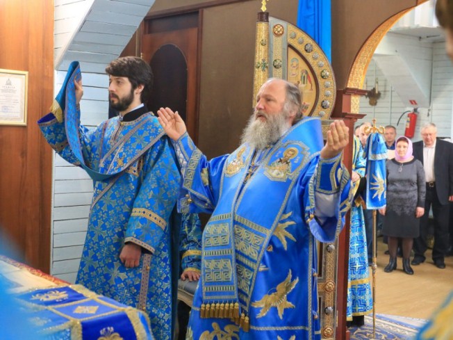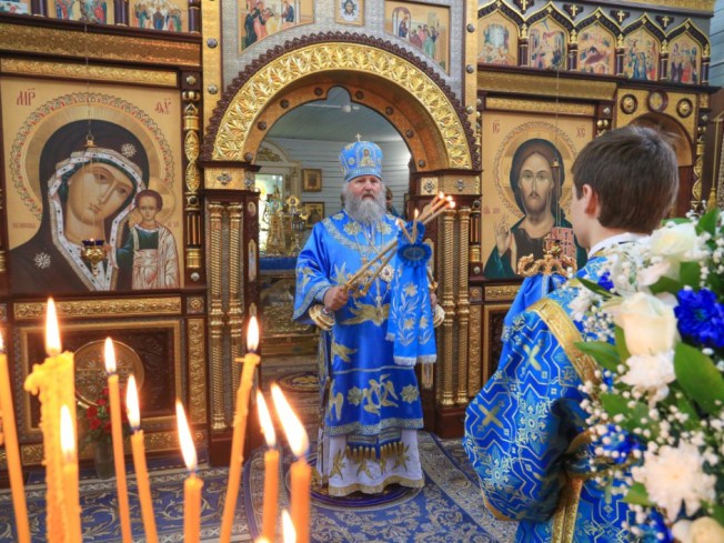 После проповеди владыка поздравил с двадцатилетием священнического служения благочинного Ханты-Мансийского благочиния, протоиерея Сергия Кравцова, пожелал ему крепкого здравия, милости и помощи Божией, покровительства Царицы Небесной.