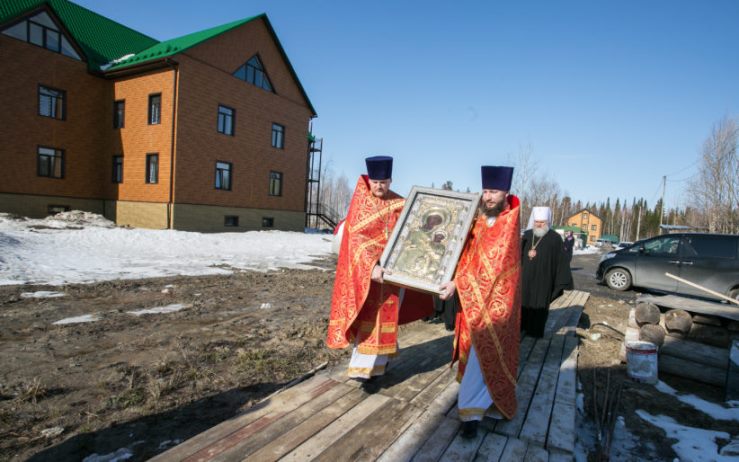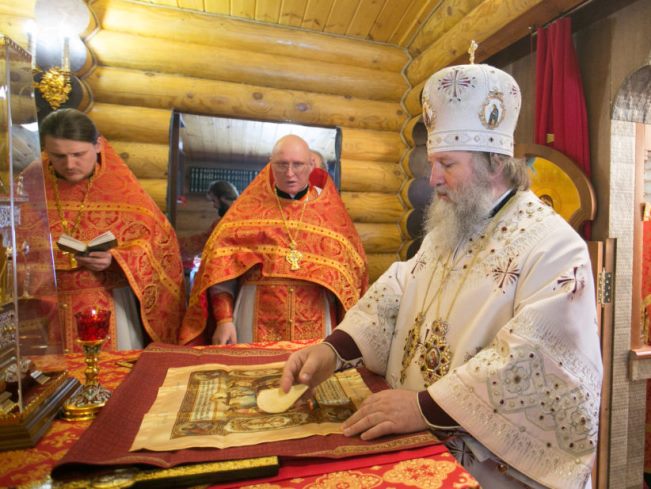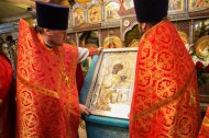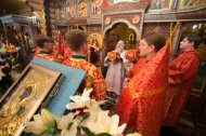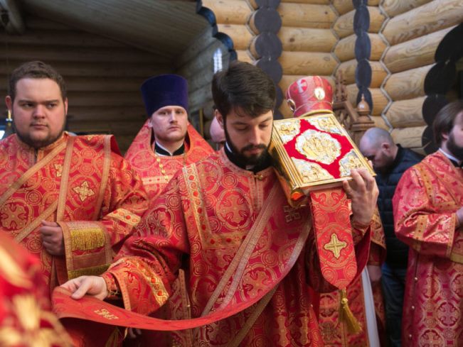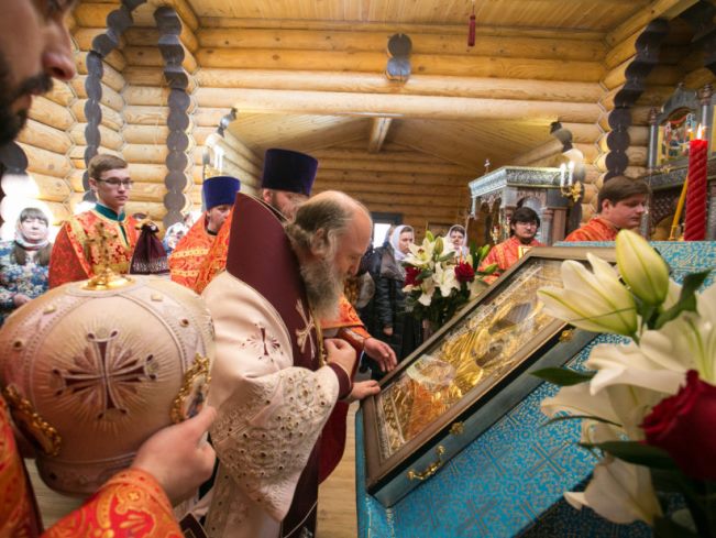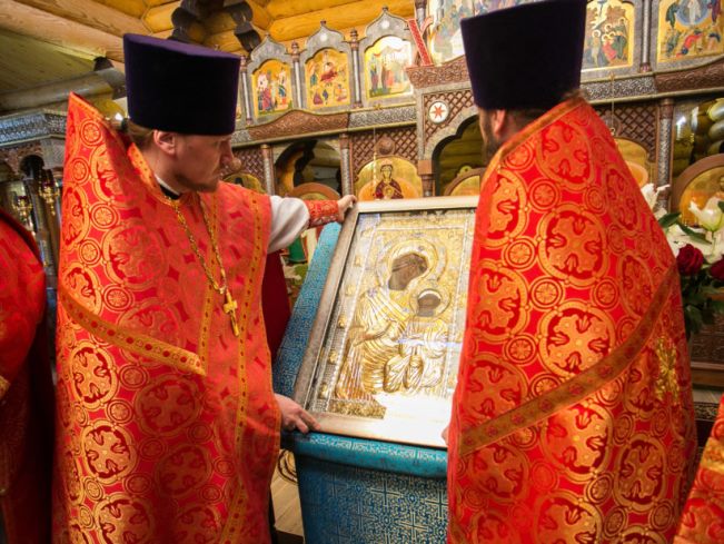 Перед началом Богослужения в храм, на постоянное пребывание, была принесена копии чудотворной иконы Божией Матери «Иверской».