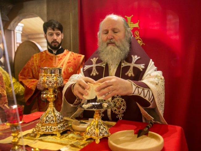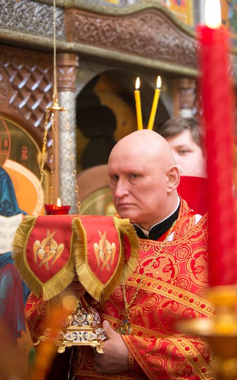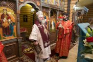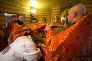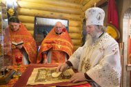 Его Высокопреосвященству сослужили: благочинный Ханты-Мансийского благочиния, протоиерей Сергей Кравцов; заведующий епархиальной канцелярией, иерей Сергий Нагорный, иерей Александр Петюр, иерей Бартков Леонид, диакон Даниил Матвеев, иеродиакон Евсевий Куприянов.