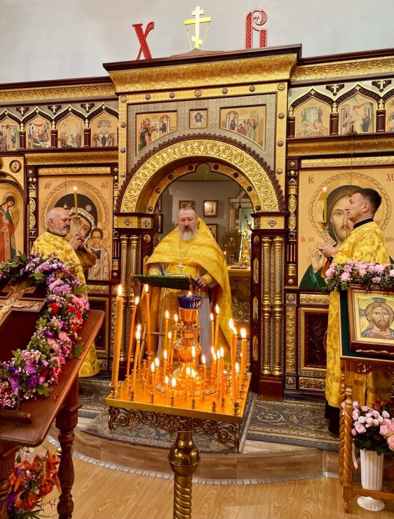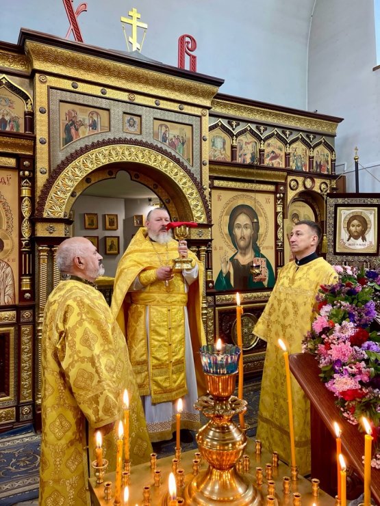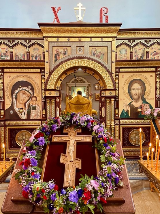 В праздник Происхождения Честных Древ Животворящего Креста Господня совершена Божественная Литургия в Знаменском храме