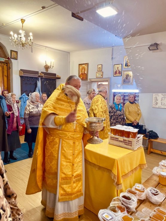 Божественную Литургию в Знаменском храме совершил настоятель иерей Леонид Бартков в сослужении иерея Константина Мемячкина. После отпуста духовенство и прихожане совершили поклонение Животворящему Кресту Господню, изнесенному накануне на середину храма. Отец Константин освятил мед нового урожая и поздравил верующих с празднованием Всемилостивому Спасу, Пресвятой Богородице и началом Успенского поста.