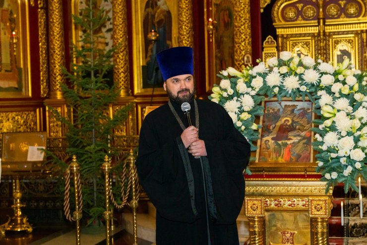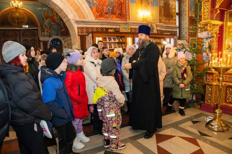 Помощник благочинного Ханты-Мансийского благочиния по взаимодействию с обществом и СМИ, клирик Знаменского храма иерей Тарасий Борозенец провел для ребят познавательную экскурсию, рассказал об истории возникновения праздника Рождества, Святом семействе и православных святых, ответил на вопросы об устройстве храма, значении икон и реликвий.