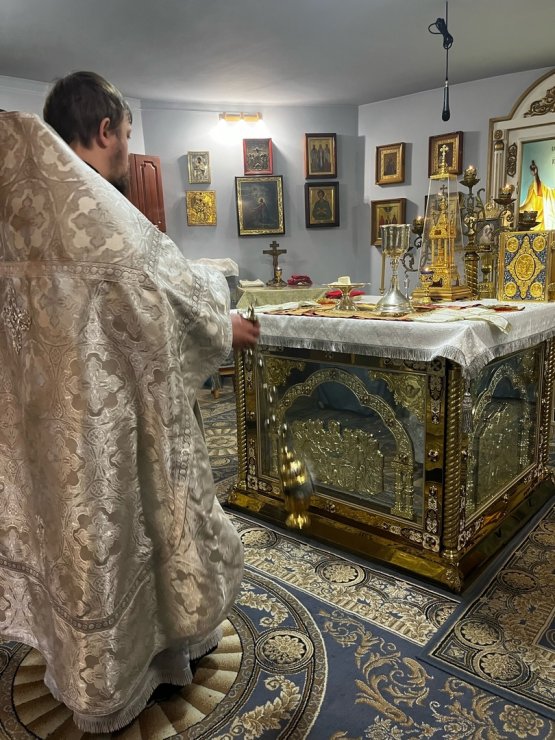 Его Преподобию сослужил клирик храма иерей Тарасий Борозенец, песнопения исполнил церковный хор.
