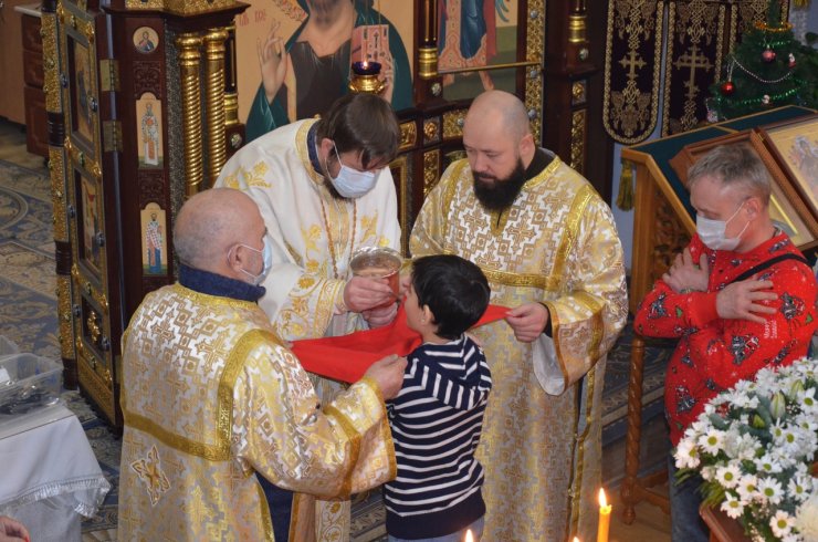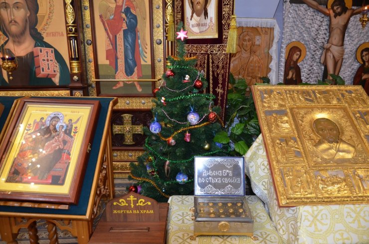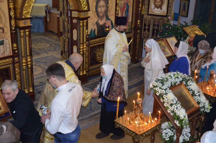 По окончании богослужения отец Леонид поздравил всех присутствующих с праздником, огласил Рождественское послание Святейшего Патриарха Московского и всея Руси Кирилла и митрополита Ханты-Мансийского и Сургутского Павла. По традиции всем молящимся за богослужением были вручены сладкие подарки.
