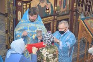 Божественную Литургию совершил настоятель храма иерей Леонид Бартков в служении клириков храма: иерея Андрея Зотова, иерея Константина Мемячкина, иерея Тарасия Борозенца.
