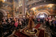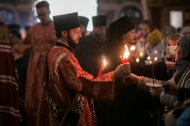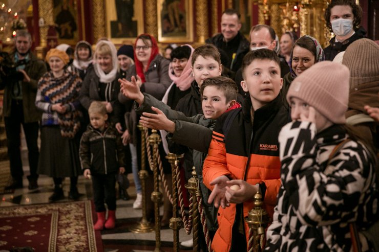 «Дорогие отцы, братья и сестры, позвольте паки и паки, снова и снова поприветствовать вас всех вечным гимном: «Христос Воскресе!». Безмерная милость Божия к роду человеческому, и мы с вами видим, что мы живём в непростое время, но время Божие. Господь даёт нам его, и показывает, что Он с нами, и мы являемся прямыми участниками благодати схождения Благодатного огня, которая подаётся, по словам Афонских старцев, как знак продления жизни на Земле. Мы усматриваем в этом великую любовь Божию, милость Его к роду человеческому, и хотелось бы сказать о том, что Господь есть любовь, ибо главное в нашей жизни- творить любовь друг к другу, ведь невозможно любить Бога, не любя ближнего. Как бы ни горько и скорбно было от плохих взаимоотношений между нами, но любовь должна покрывать всё. Тогда и Господь будет с нами, и жизнь будет продлена нам с вами. Сердечно благодарю вас, мои дорогие, за участие в Пасхальных богослужениях, храни всех Господь!»