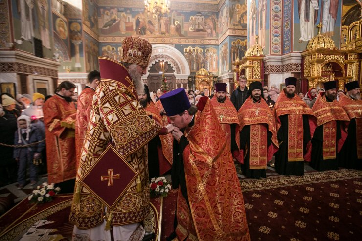 На малом входе указом Святейшего Патриарха Московского и всея Руси Кирилла за усердное служение Святой Церкви ряд клириков Ханты-Мансийской епархии к празднику Святой Пасхи были удостоены богослужебно-иерархических наград: