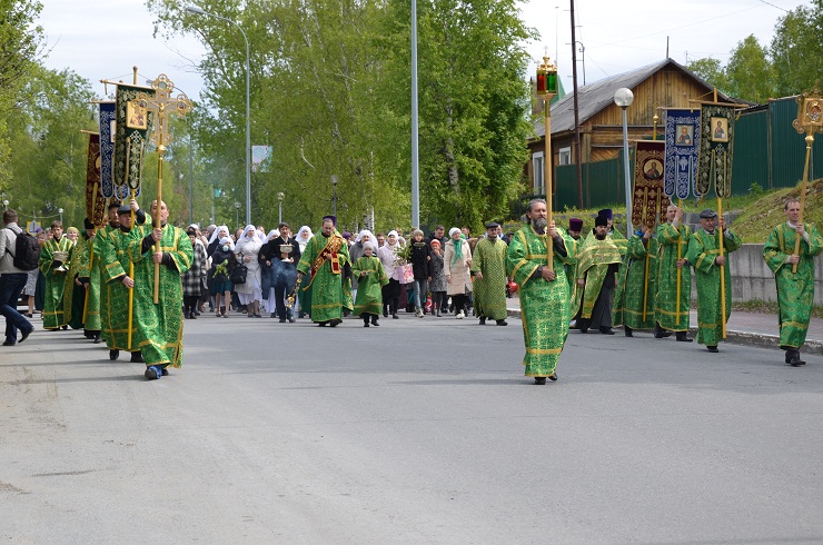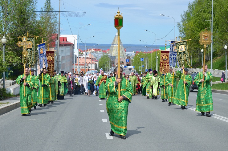 8 июня состоялось праздничное богослужение посвященное Дню Святой Троицы, после которого духовенство Знаменского храма приняли участие в Крестном ходе по городу Ханты-Мансийску.