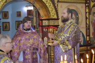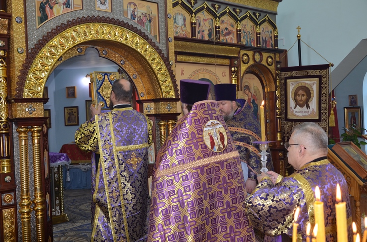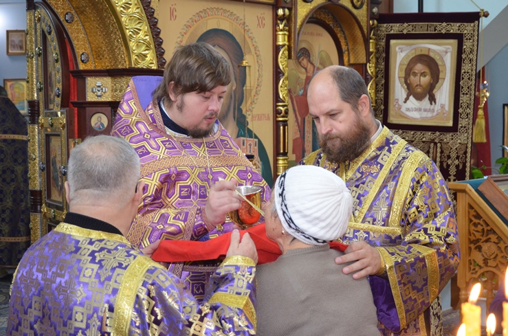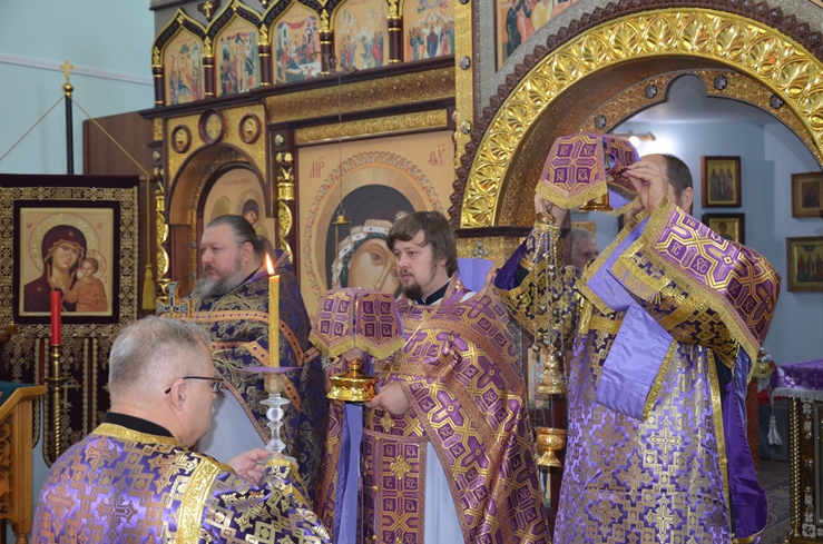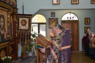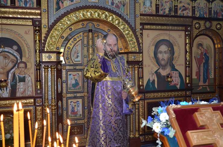 В конце Богослужения иерей Леонид Бартков поздравил всех молящихся с праздником Воздвижения Честнаго и Животворящего Креста Господня.