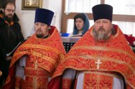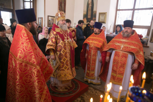 Его Высокопреосвященству сослужили: благочинный Ханты-Мансийского благочиния, протоиерей Сергей Кравцов; заведующий епархиальной канцелярией, иерей Сергий Нагорный, настоятель храма, иерей Бартков Леонид, иерей Константин Мемячкин, диакон Даниил Матвеев.