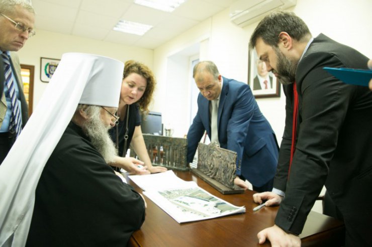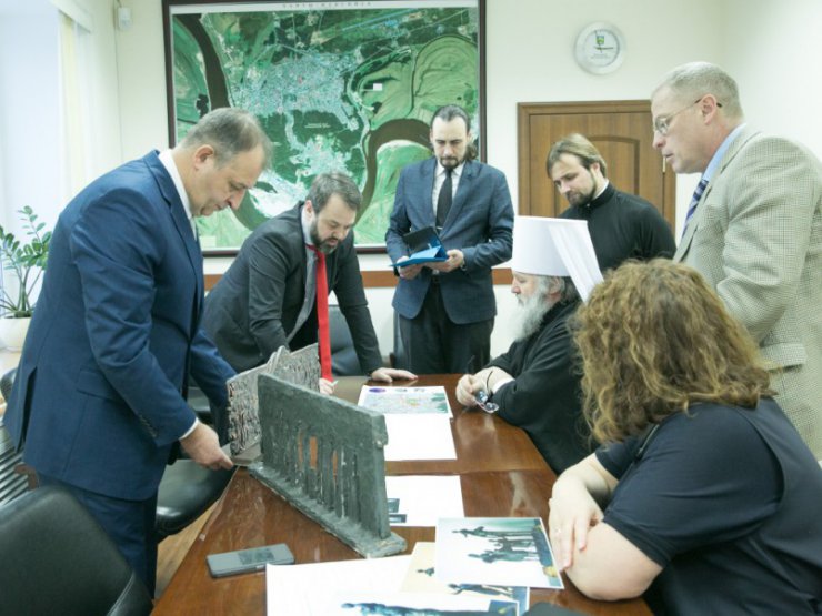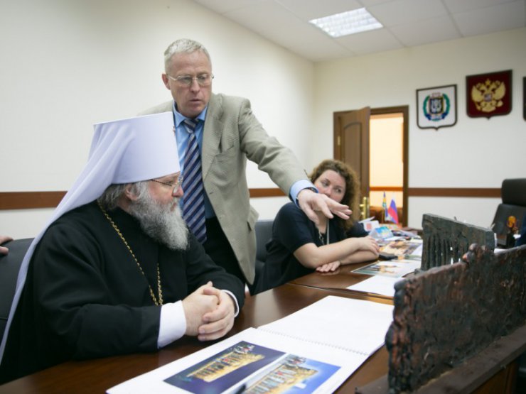 Перед началом заседания митрополит Павел ознакомился с проектом строительства часовни в память репрессированных.