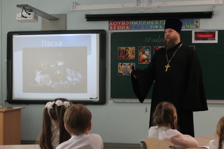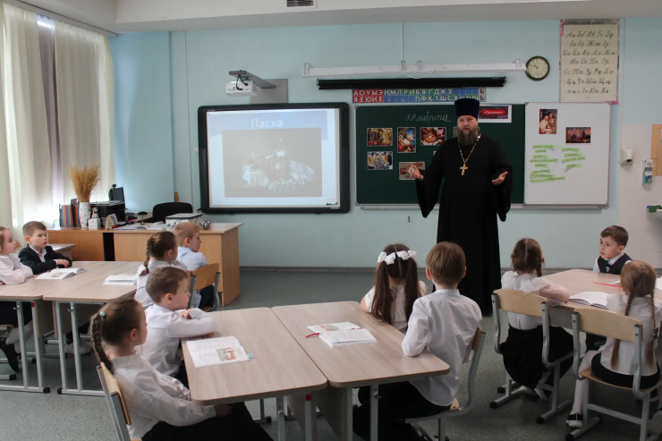 Встреча была посвящена главным приближающимся праздникам нашей Родины — Светлой Пасхе и Дню Победы. Отец Тарасий в доступной для детей форме рассказал школьникам о смысле и истории главного христианского праздника, его традициях и месте в ряду других церковных дат. Особое внимание гость уделил исторической параллели между Пасхой 1945 года и Днем Победы в Великой Отечественной войне, подчеркнув символическую связь этих событий.