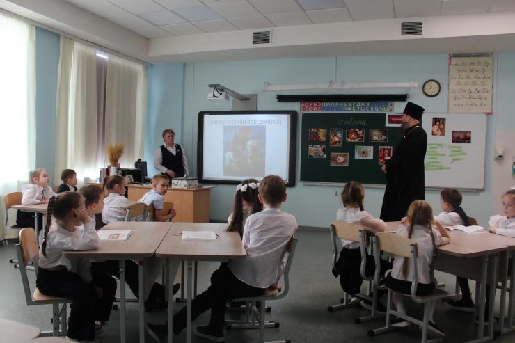 Кроме того, священник познакомил юных слушателей с житием святого мученика Георгия Победоносца, рассказав о нем как о небесном покровителе русского государства и народа. Живой диалог позволил детям не только узнать новые факты, но и задать интересующие их вопросы о православных традициях.