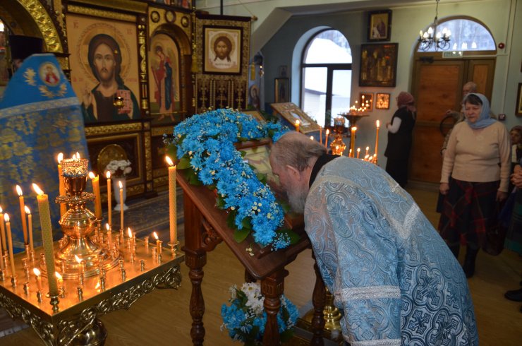 На праздник Введения во храм Пресвятой Владычицы нашей Богородицы и Приснодевы Марии в храме в честь иконы Божией Матери «Знамение» г. Ханты-Мансийска состоялось Всенощное Бдение и Божественная Литургия. В этом году Двунадесятый праздник выпал на будний день, тем не менее молящихся в храме собралось большое количество; к участию в службе расположил и начавшийся Рождественский пост. На Литургии присутствовало около 50 человек.