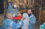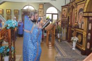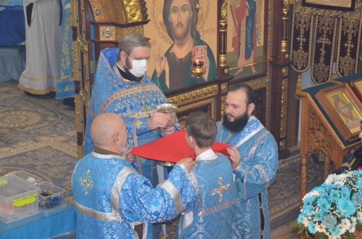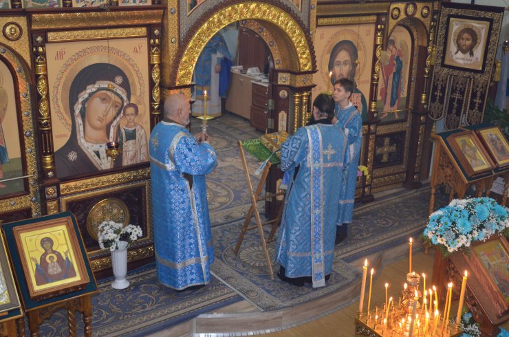 В храме в честь иконы Божией Матери «Знамение» в этот день совершалось праздничное богослужение. Божественную Литургию возглавил настоятель храма иерей Леонид Бартков. Его Преподобию сослужили клирики храма: иерей Андрей Зотов, иерей Константин Мемячкин, иерей Тарасий Борозенец, диакон Александр Фокин.