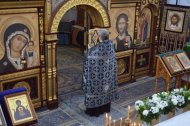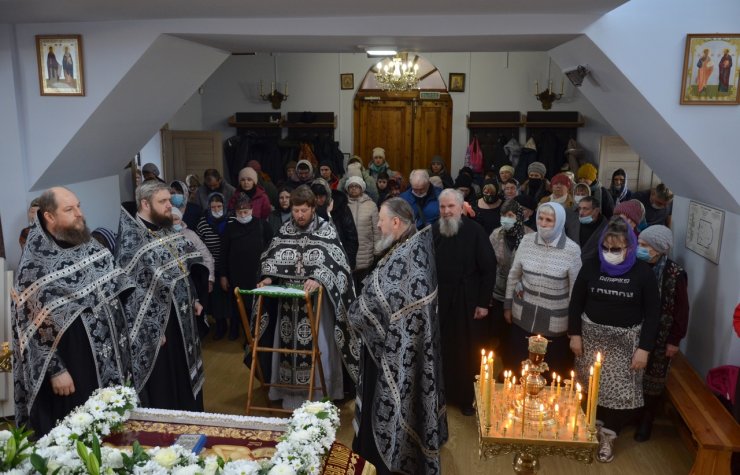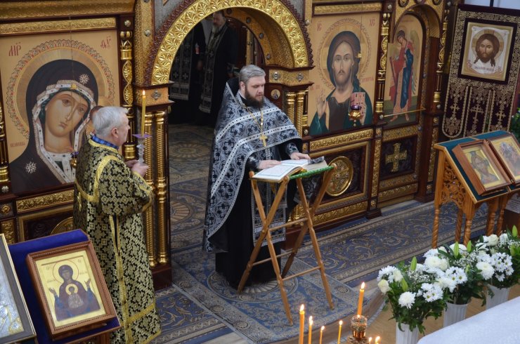 Его Преподобию сослужили клирики храма: иерей Андрей Зотов, иерей Константин Мемячкин, иерей Тарасий Борозенец.