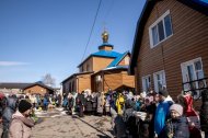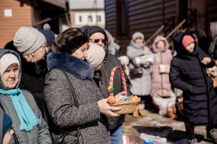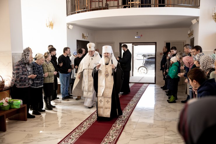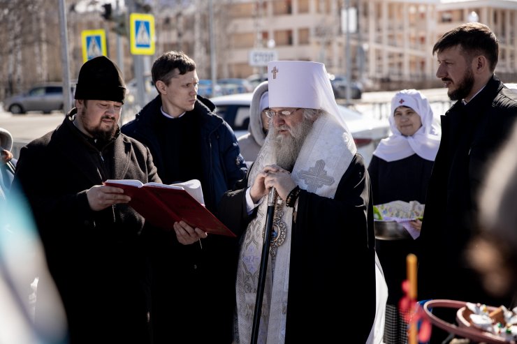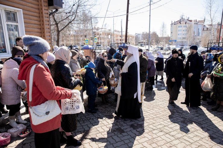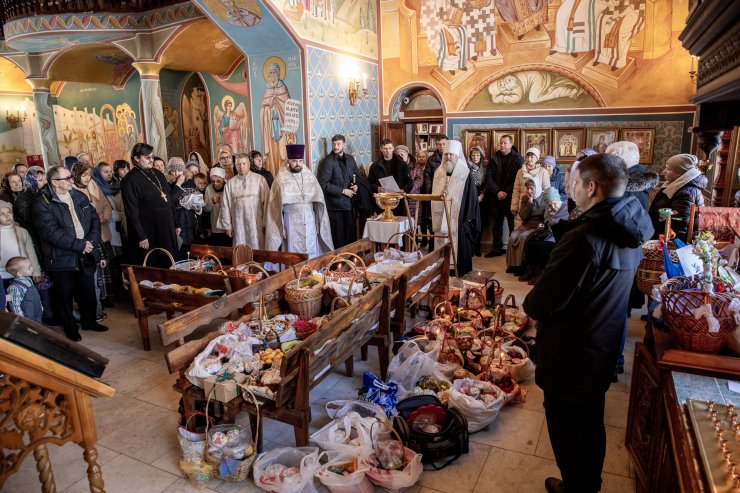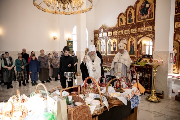 Митрополит Павел приветствовал всех собравшихся и освятил пасхальную снедь.