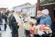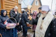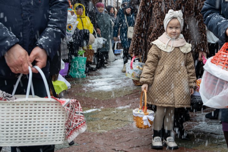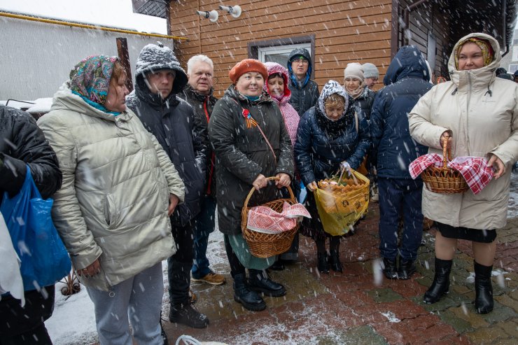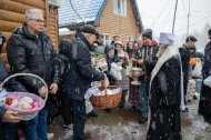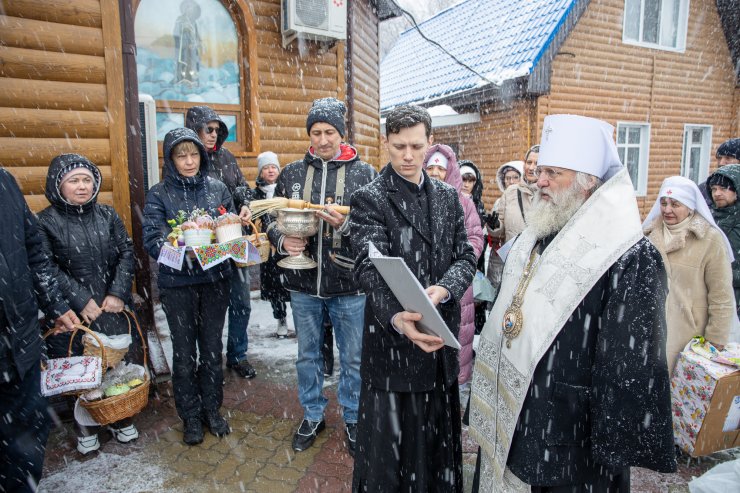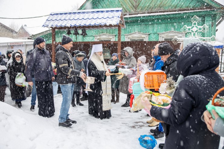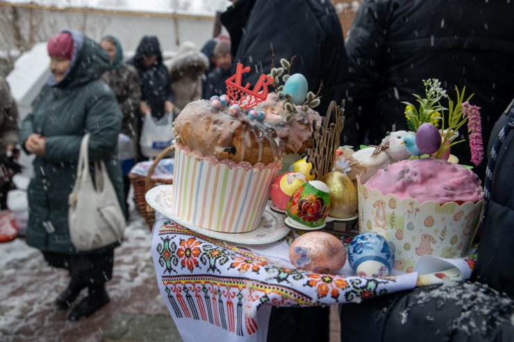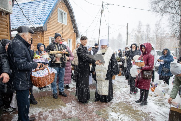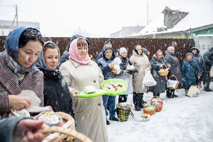 Митрополит Павел приветствовал всех собравшихся и освятил пасхальную снедь.