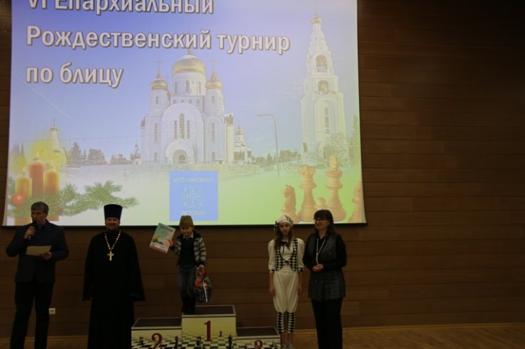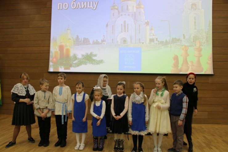 Перед началом шахматного турнира учащимися (9 детей) и педагогами Баженовой Т.К., Шустовой Г.Н. воскресной школы Прихода Знаменского храма была представлена литературно-музыкальная композиция участникам турнира, приуроченная Рождеству Христову.