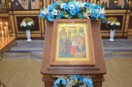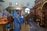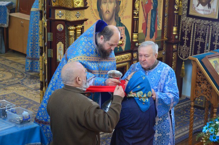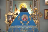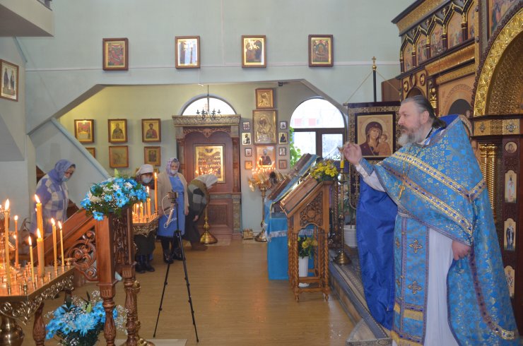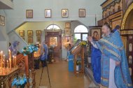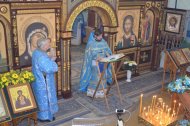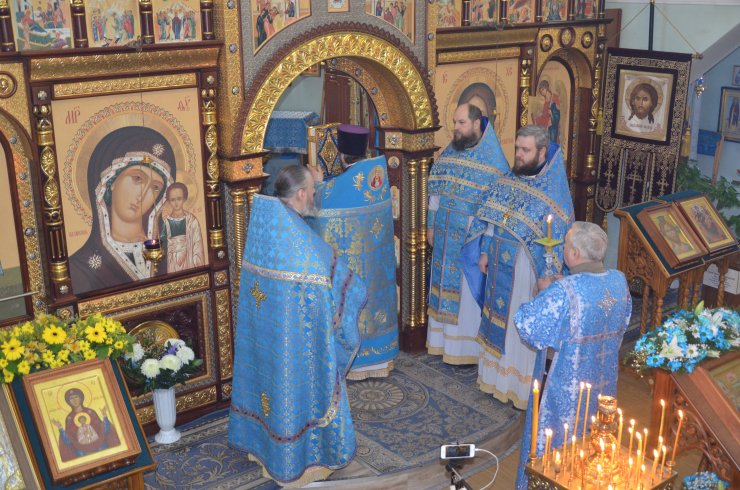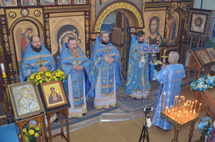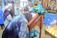 В храме в честь иконы Божией Матери «Знамение» перед началом праздничного богослужения настоятелем храма иереем Леонидом Бартковым был совершен водосвятный молебен, по окончании которого отец Леонид возглавил Божественную Литургию в служении клириков храма: иерея Андрея Зотова, иерея Константина Мемячкина, иерея Тарасия Борозенца. Песнопения исполнил церковный хор.