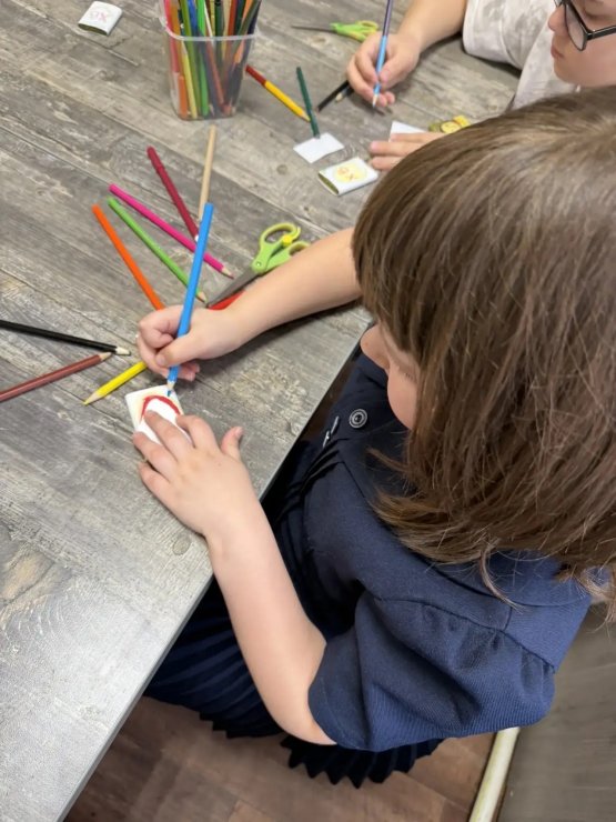 Но на этом занятие не закончилось. Мы решили, что настоящий урок веры обязательно должен выливаться в доброе дело. В этот день наши юные прихожане взяли шоколад и своими руками украсили его в пасхальной тематике: нарисовали куличи, яйца, свечи, написали «Христос Воскресе». Эти сладкие пасхальные подарки будут переданы в православный гуманитарный центр «Твори Добро», а затем - нашим бойцам, которые сейчас вдали от родных, на передовой. Пусть даже маленькая плитка шоколада, украшенная детскими руками и от сердца, напомнит им, что о них помнят, за них молятся и их ждут дома.