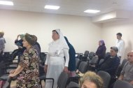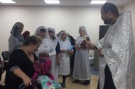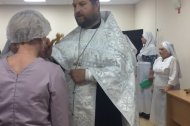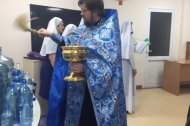 29 августа 2019 г. в конференц-зале Онкологического центра при Окружной клинической больнице г. Ханты-Мансийска состоялся водосвятный молебен перед иконой Божией Матери "Всецарица". Молебен провели председатель отдела по благотворительности и социальному служению Ханты-Мансийской епархии, настоятель храма в честь иконы Божией Матери "Знамение", иерей Леонид Бартков вместе с клириком Знаменского храма, иереем Тарасием Борозенцом и сестрами милосердия в честь преподобномучениц Великой Княгини Елисаветы и инокини Варвары. В молебне приняли участие врачи, медсестры и пациенты. По завершению молебна отец Тарасий обратился к присутствующим со словом проповеди, в которой раскрыл православное отношение к онкологии и пожелал всем помощи Божией в лечении и преодолении недуга рака.