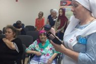 Затем священнослужители окропили святой водой палаты, кабинеты, технические помещения онкоцентра, а также всех желающих.