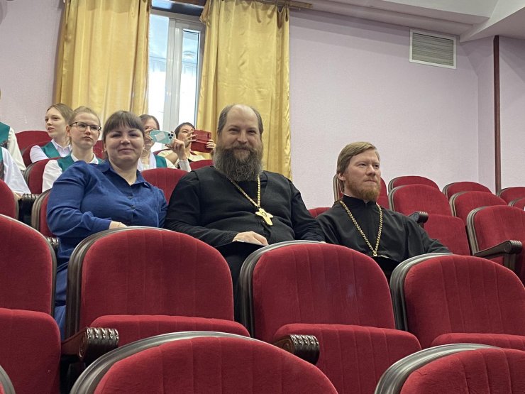 Духовник гимназии, иерей Евгений Набоков, иерей Тарасий Борозенец и Аднакулова Татьяна Олеговна вошли в состав судейского жюри.
