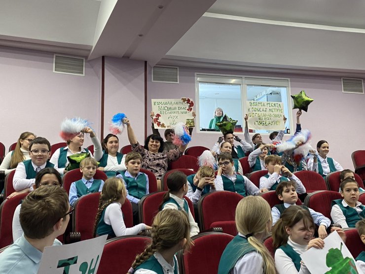 В перерывах между конкурсами с песнями и стихами выступали ученики 5П класса. Зрители активно болели за свои команды.