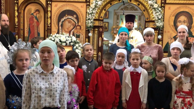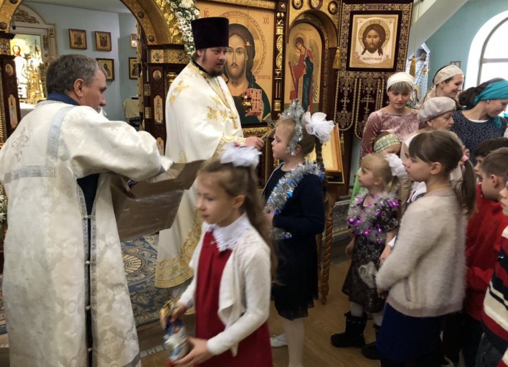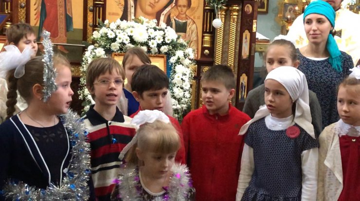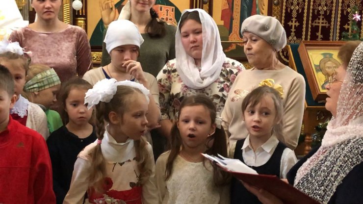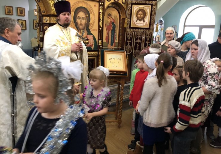 Воспитанники воскресной школы поздравили прихожан Знаменского храма с Рождеством Христовым.