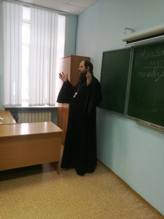 О. Тарасий провел беседу на тему «Нравственность – путь человечности». Были освещены вопросы: понятие и ключевое место нравственной сферы в жизни человека и общества, светский (атеистический) и религиозный подходы к пониманию человека, смысла человеческой жизни и нравственного призвания личности, экзистенциальный выбор между двумя этическими путями – эгоистического, материалистического, потребительского гедонизма, с одной стороны, и жертвенного служения Богу, ближнему и миру, с другой.