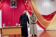 Встреча проходила в актовом зале Духовно-просветительского центра кафедрального Воскресенского собора и собрала немало людей, жаждущих услышать мудрые слова священника. Среди них присутствовали священнослужители Знаменского храма: настоятель иерей Леонид Бартков и иерей Тарасий Борозенец.