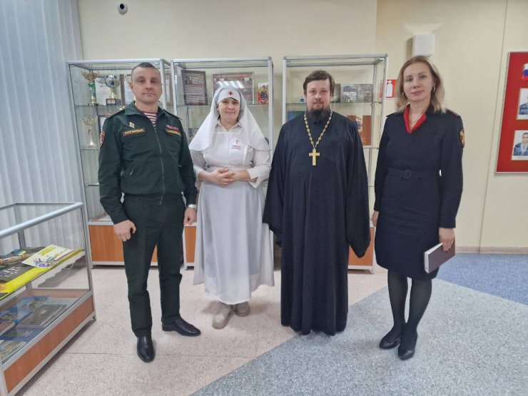 17 января 2025 года по приглашению Управления Росгвардии Ханты-Мансийского автономного округа – Югры настоятель Знаменского храма иерей Леонид Бартков и заведующая Православным гуманитарным центром «Твори Добро» Ирина Геннадьевна Колычева встретились с личным составом ведомства.