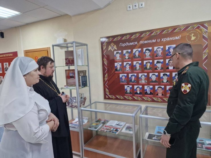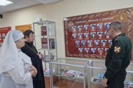 Также сотрудники Росгвардии провели экскурсию по ведомственному музею, рассказали о находящихся в нем экспонатах и «Стене памяти», посвященной 25 военнослужащим и сотрудникам территориального Управления, погибшим при выполнении служебно-боевых задач.