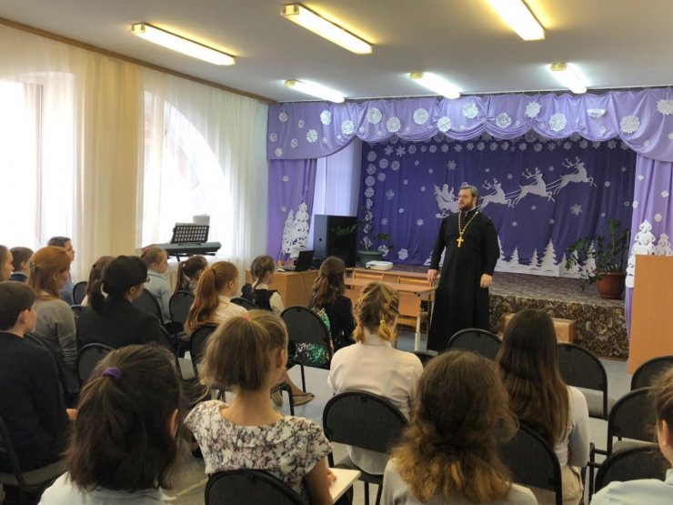 17 января 2019 года клирик храма в честь иконы Божией Матери «Знамение» г. Ханты-Мансийска иерей Андрей Зотов провёл ряд встреч с преподавателями и учащимися 5-11 классов Средней общеобразовательной школы с. Нялинское