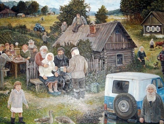 Настрой программы поддерживает картина уральского художника Леонида Баранова из серии «Жили‑были дед да баба». Простые деревенские старики на его картинах - не «абстрактные пожилые люди», а живые дедушка и бабушка, со своей историей, трудом, радостями и тихой печалью. Эти образы напоминают: старость - не про ненужность, а про особое время, когда человеку особенно важно знать, что его помнят, любят и не оставляют.