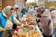 После богослужения в преддверии Международного дня пожилого человека волонтерами Православного гуманитарного центра «Твори Добро» и сестрами милосердия Православного сестричества г. Ханты-Мансийска на территории храма было организовано чаепитие с пирогами, ватрушками и сладостями.
