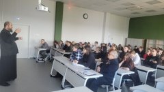 26 мая состоялась встреча помощника по Ханты-Мансийскому благочинию председателя епархиального отдела по взаимодействию с обществом и СМИ, клирика Знаменского храма, иерея Тарасия Борозенца с учащимися и преподавателями Технолого-педагогического колледжа столицы Югры.