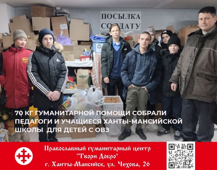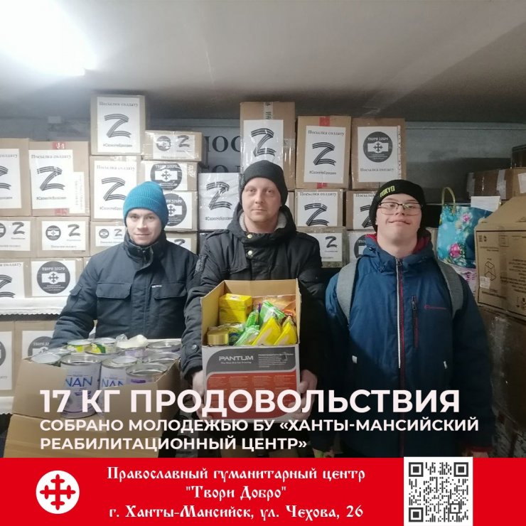 15 февраля в Православный гуманитарный центр "Твори Добро" приходили воспитанники Ханты-Мансийского реабилитационного центра. Группа молодёжи под руководством Зиновьева Михаила Владимировича в течение двух недель собирала гуманитарную помощь для солдат, участвующих в Специальной военной операции. Ребята привезли 17 кг продуктов и жестяные банки, нужные для изготовления самодельных свечей. Сегодня их посылки будут отправлены с гуманитарным грузом в зону боевых действий.