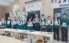 12 марта 2025 года помощник председателя отдела по взаимоотношениям Церкви с обществом и СМИ в Ханты-Мансийском благочинии, клирик Знаменского храма, иерей Тарасий Борозенец провёл урок на тему "День православной книги" для учеников 4П класса Православной гимназии Ханты-Мансийска.10 марта