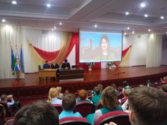 26 апреля 2023 г. в Духовно-просветительском центре г. Ханты-Мансийска состоялась акция «Здравствуй, солдат», во время которой учащиеся православной гимназии и студенты ЮГУ смогли с помощью видеосвязи пообщаться с журналистами Донецка. В мероприятии приняло участие духовенство города.25 апреля